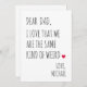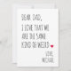 this was so well received by my son and husband -- they both have a great sense of humor -- and this card was done with creativity and fun. BIG HIT. BIG BIG HIT !! i'm always impressed by zazzle's quality - card stock, printing and color ! excellent !