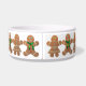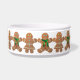 Customisable pet bowl decorated with a bunch of cute gingerbread men and gingerbread women holding.hands together while dancing.