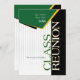 Invite your class to your reunion with style! The classy green and gold class reunion invitation will be an elegant introduction to the event!