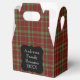 These customisable red and green plaid family reunion favour boxes can be personalised with your family's name and the year to celebrate your annual family reunion! These green and red tartan custom family reunion favour boxes feature a background with a green and red plaid design and a black chalkboard! Perfect to house some small treats or baked goods! Text fields are fully customisable! Personalise with your family name! Images provided by Dana Conditt and Karen's Scraps and Graphics of digitalscrapdesigns.com and are used with permission.