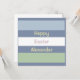 Horizontal pastel light blue, light green and dusty blue striped pattern and customisable text: Happy Easter. Click edit to change the text and name to your liking,