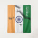 Stylish, patriotic India Flag Tapestry with CUSTOMIZABLE TEXT. The design shows the flag of INDIA combined with the map outline in a 3-D effect. At the bottom corner, the text reads WELCOME TO OUR HOME. This can be replaced with your own wording in your own language or typography (or deleted). This Indian flag backdrop would adorn the walls of any patriotic home and can also be used in public settings, eg. embassies, cultural centres, for national celebrations. Matching gifts available.