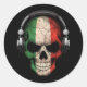 Customisable Italian Dj Skull with Headphones Classic Round Sticker
