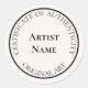 Ivory circle design customisable adhesive Certificate of Authenticity sticker for artists and makers.