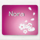 A purple mousepad with an illustration of two snow rabbits, two sakura flowers, and four sakura flower petals. Customise with your name!