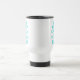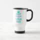 Personalised Keep Calm and your text travel mug Make your own Keep Calm and Carry On parody. Vintage Keepcalm typography design. Turquoise blue and white colour. Customisable template.