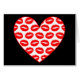 Kissy lips heart greeting card. Background colour can be customised.
