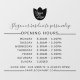 Simple professional business opening hours to personalise. Add your own logo and your text.