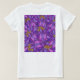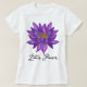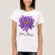 The t-shirt features a bold purple lotus flower with yellow stamens at the centre. Beneath the flower, there is text that currently reads “Lotus Flower” in a decorative cursive font. This text is customisable, meaning it can be changed to any wording, phrase, or name of your choice to personalise the design.