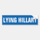 Lying Hillary bumper sticker.Show your disdain for the democratic nominee for president 2016.Design includes white text against a blue background.Will look great on your car and other areas.Get yours today!