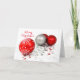 Customisable Merry Christmas card with whites and red baubles and stars on white background. Personalised Season's greetings card.