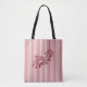 Customisable Monogram Pink Stripes Cabbage Roses Tote Bag