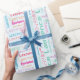 This personalised gift wrap showcases a custom name seamlessly blended into a stylish and modern design. It’s the perfect way to add a vibrant and playful touch to birthday presents, delighting both kids and adults alike.