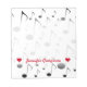 This notepad design features a pattern of various sized music notes. It might be appreciated by a musician, a composer, a singer, or somebody else who really likes music. It also features a personalised name near the bottom, between two heart shapes. [~Z0000101]