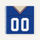 8.5" x 8.5" Spiral Notebook with laminated covers, and a choice of paper style, including sketchbook, ruled, half ruled, graph. The front and back of the notebooks have customisable jersey style designs, allowing you to add your own choice name and number to the back, and number on the front, use the boxes to the right of the image to change the text.