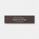 Customisable Name Plate for Crafters, Artists, Businesses shown with dark walnut like texture and white print..