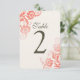 Classy Customisable Coral Wedding Table Card Numbers with a beautiful Floral print. Collection created by Colourful Designs Inc. Copyright 2014.