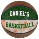 Two of the sections of this basketball have specially-coloured backgrounds. The text shown here is fully customisable -- you can change it to read whatever you want. Use a first and last name, a team name, position played, title or championship name. This makes a great gift for your favourite basketball player.