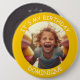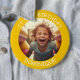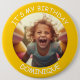 Customisable photo and name - IT'S MY BIRTHDAY - button. Yellow frame with white font.