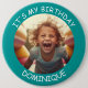 Customisable photo and name - IT'S MY BIRTHDAY - button. Teal frame with white font.