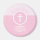 Whether it is a baby girl or child, this pink Baptism gift, souvenir, giveaway and party essential is very sweet to give to the Baptised girl. The cross in the centre circle sets off the meaning of the religious occasion. Add that baby girls’s name, venue and date of baptism for a truly personalised Baptism congratulations!