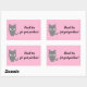 Customisable pink Thank You sticker with grey cat