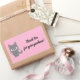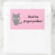A customisable cute pastel pink Thank You rectangle sticker with grey cat to express your appreciation towards your customers for purchasing your products. Your customers will love these thank you stickers.