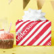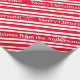 Design features festive red and white candy-cane stripes with a twist! Customisable design features your Christmas message displayed in white text against the red stripes. Everyone will know just who the gift wrapped in this paper is from!