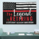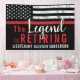This design features a firemens flag with black and white stripes, and a thin red line stripe as well. "The Legend is Retiring" text sits above the name of the retiring firefighter, lieutenant, or chief. Celebrate in style!