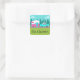 These Customisable Retro Camper / Trailer and Car Stickers feature a mid century modern, minimalist cartoon drawing that will leave you ready to take to the open road. An homage to the 1950s, this design features a vintage turquoise car with white top, pulling a kitschy travel trailer to its final destination. The perfectly restored, retro RV has a hot pink lower half, white top half, and a turquoise lightning bolt separating the two. The door in the side of the camper is also turquoise. The final accent is the hot pink wing protruding from the back of this home on wheels. The happy campers are motoring down a grey road. The roadway is surrounded by lush, green grass. In the background, we can see the teal silhouettes of a veritable forest of cedar trees, against an aqua sky with puffy, light blue clouds. The lower portion of this design has plenty of room for personalising. This design is perfect for everyone from retired hippies, fledgling hipsters, or anyone who wants to relive some great childhood memories. The best part is that no one is asking, "Are we there yet?"