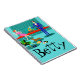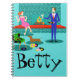 This Customisable Retro Couple with Dog Spiral Notebook looks like a scene out of a romantic comedy. The 1960s's style, minimalist art design features an attractive couple enjoying a romantic evening at home. The sophisticated room prominently features an aqua and teal brick fireplace with a bright red ledge. A beautiful, redhead woman wearing a bright, pink dress is perched on the ledge. She is enjoying a martini with a floating olive, a roaring fire, good music, and the company a tall, dark and handsome man. The man is wearing a blue suit and red tie. His martini glass is raised to toast his charming companion. In his other hand, he is holding a vinyl record album. At his feet, we see a most adorable dachshund wearing a red collar. The playful wiener dog is walking in the direction of a green record player with orange, spindle legs. On the floor, there is a colourful group of fun, eclectic, vinyl records. Cheers! Here's to the perfect evening at home. Personalise this design with the name of the recipient.