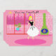 This Customisable Retro In the Pink Invitation looks like a scene out of a 1960's romantic comedy. The minimalist design shows a sophisticated woman in her ultra kitschy and ultra pink, penthouse apartment. The room features a pink brick wall with white grout lines. In front of the wall, there is a green cone fireplace with a roaring fire. Through sliding glass doors we see a pink balcony with a white railing. A lush, tropical plant is in an aqua flowerpot. The view from the balcony is of a silhouette of a big city skyline. Of course, the silhouette is in shades of pink! A yellow, crescent moon is in the sky. Standing on a hot pink, shag rug in the apartment is the leading lady of this design. In stark contrast to the rosy world she has created, the beautiful blonde is wearing a form fitting, black, scoop-necked top with a long, flared, white skirt with black feather embellishments. With this design, you too can be looking at the world through rose coloured glasses! The opposite side of this pretty invitation is pink with plenty of room for personalising for your special event--whether it's a Sweet 16 party, a bridal shower, or just a fun get together!
