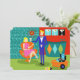 These Customisable Retro Martini Couple Invitations look like a scene out of a romantic comedy. The setting of this 1960's style, minimalist art design is an elegantly decorated, mid century modern house or apartment. The cast is an attractive couple enjoying an evening filled with sparkling conversation, good music and bottomless drinks. The room features a green floor, and an aqua and teal brick wall. Resting comfortably in a mod, orange egg chair is a beautiful woman. Her bright pink dress is just short enough to show off her shapely gams. With the wave of a hand, this blonde beauty has the immediate attention of her male admirer. Her fair haired companion is wearing a blue suit, white shirt and black bow tie. In his hands, he is holding two, crystal martini glasses with floating olives. Don't worry. He's offering one to his lady friend. The pair is having such a delightful time that neither is taking notice of the hour showing on the kitschy, red, starburst clock on the brick wall behind them. On a recessed fiery red wall, there are three Classic Movie Martini Stretched Canvas Prints, also available from StrangeLittleOnion's Zazzle store (hint, hint!) Two of the prints feature turquoise backgrounds and one is on a dramatic black background. Centred beneath the prints is an elegant wet bar. The front of the teal bar has three harlequin diamonds, in shades of orange, turquoise and green. We can see the silhouettes of martini glasses resting on the counter top. Across the room, an orange ottoman is holding a blue and black, portable record player. On the floor, we see the vinyl records and a bright yellow album cover. This attractive duo is having such a delightful time that neither is taking notice of the hour showing on the kitschy, red, starburst clock on the brick wall behind them. The opposite side of these fun invitations have plenty of room for personalising with your event details.