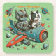Customisable Retro Robot and Cat in Space Square Paper Coaster