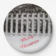Customisable snow on a picket fence paper plate merry christmas text