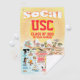 Bright and colourful scene offers a spectacular view of Southern California - wacky characters frolic on the beach and desert of SoCal showcasing Los Angeles, San Diego, Orange County, Santa Barbara, Riverside, Palm Springs, El Centro, Anza Borrego and Joshua Tree parks as well as the border cities of Tijuana, Tecate and Mexicali. This charming scene has it all – a surfer hangs ten while a killer whale leaps out of the water, zoo animals greet the tourists, a muscular beach couple both flex to impress as a T-Rex roars a challenge and a tank moves into position and much more…