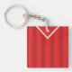 Easy to edit soccer / football / sports jersey keychain, just use the boxes to the right of the image to insert your own choice of name and number on the back. The design of this jersey is red with white v-neck trim. The background colour can be edited, just click on CUSTOMIZE.