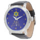Customisable Star of David Watch for Bar Mitzvah Gift or ANY Occasion. Choose from many different Boys and Men's Style Watches. You, or CALL Designer Linda: 239-949-9090 to Change the Blue Background and Yellow Gold Text Colours to ANY COLORS or TRANSFER this Design to your choice of THOUSANDS of other Bar Mitzvah Gift Ideas for Boys.