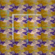Beautiful tesselation pattern fabric made of stylised flying birds. Golden tints.