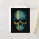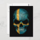 This unique design by artist Jeff Bartels features the flag of Sweden on a dark skull. Rough textures and large cracks give the skull an old and damaged appearance. The background can be customised to any colour you like to make it your own. This unique Swedish flag skull is a stylish way to show off your pride and patriotism.
