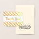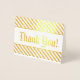 This customisable gold foil thank-you greeting card design features the message "Thank You!" on the front, along with a customised message on the inside. It could be used to show appreciation to somebody who has done something nice.