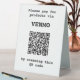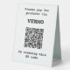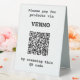 Customise this table tent sign with three lines of customisable text and one custom QR code on the front and two more payment options with two additional QR codes on the back.