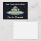 It’s not about the sauce, it’s about the saucer. These intergalactic space travelers come to our planet with a gift of peace, in this case pizza, for all mankind. This UFO has two little green men as extraterrestrial astronauts and a delicious pizza pie against a starry sky background. This isn’t science, it’s science fiction! What’s more, the interstellar greeting, “We come with pizza for all mankind”, is easily personalised with a custom caption or motto, perhaps to support your own fun birthday party celebration or pizza delivery business.