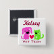 Cute button for vet techs. Pink dog and green cat with red heart in the middle. Personalise with your name. Can be used for any pet care profession that deals with cats and dogs.