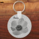 A black and white version of a colour photo of an anemone flower, taken using macro photography, to give a detailed result. You can easily customise this keychain by typing your own text in the box provided.