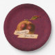 Customisable Vintage Plums Burgundy Damask Pattern Paper Plate