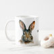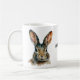 Enjoy your favourite beverage in this charming mug featuring a close-up watercolor portrait of a rabbit. Add your own text for a personalised touch, making it a perfect gift or a unique addition to your collection.