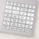 White minimalist pantry labels with black handwriting font. 28 labels per sheet. Each label has three lines of text. These labels can be customised with your own information.