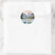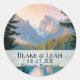 This customisable sticker features a serene, scenic landscape with mountains, trees, and a tranquil lake, creating a perfect backdrop for your event details. The sticker’s design includes customisable text for names, date, and location, framed in a soft, transparent overlay across the middle of the image. The elegant, timeless font style makes it ideal for wedding favours, invitations, or keepsakes, capturing the essence of a rustic or outdoor-themed celebration. It’s versatile and can be used on envelopes, gift bags, and other items to add a personal touch to your special day.