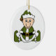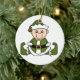 A baby dressed in a green elf suit on an ornament you can easily customise with your own text before ordering.